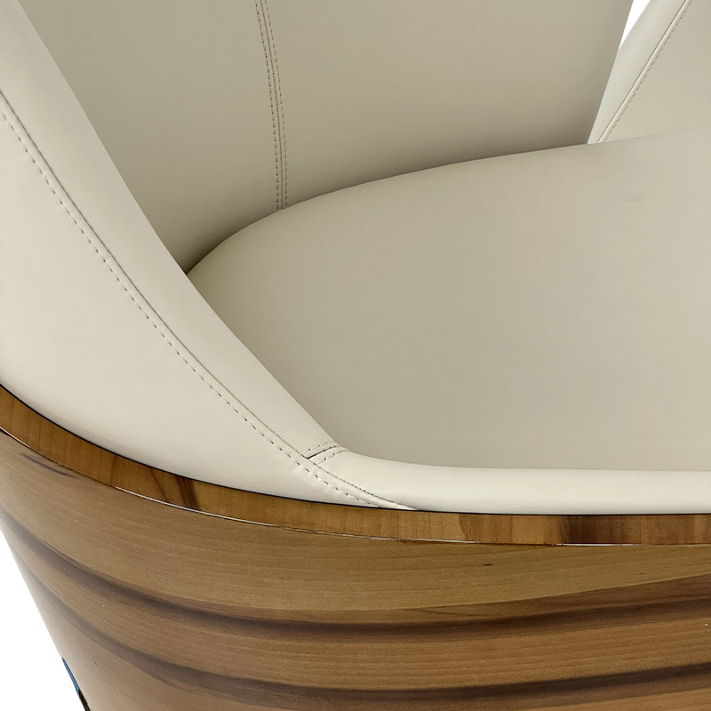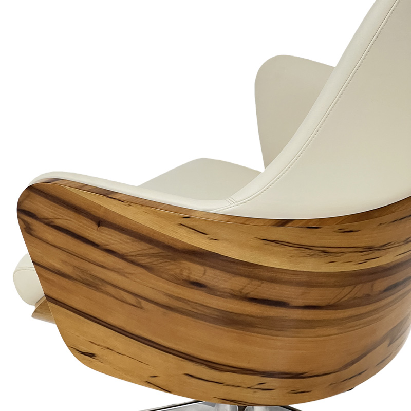 A refined luxury executive office chair designed for high-end home offices and CEO suites. Upholstered in elegant ivory leather (or premium leatherette) with a warm wood-trim detail and a polished metal 5-star base, it delivers an Italian-inspired modern luxury look. Featuring 360° swivel, height adjustment and smooth casters, it’s ideal as a CEO desk chair, conference chair or home office chair for villas, penthouses and executive workspaces.