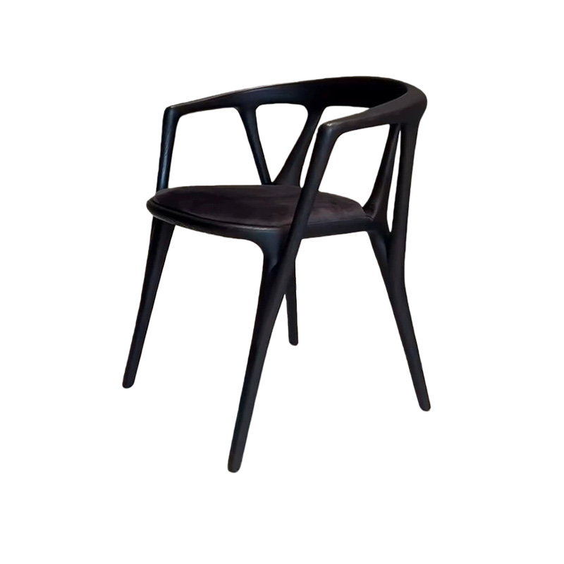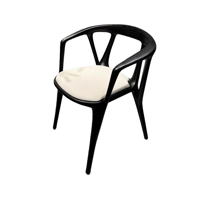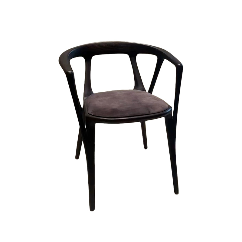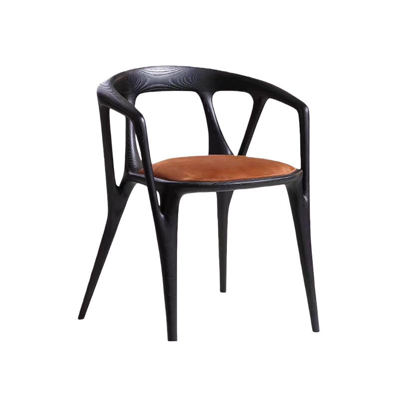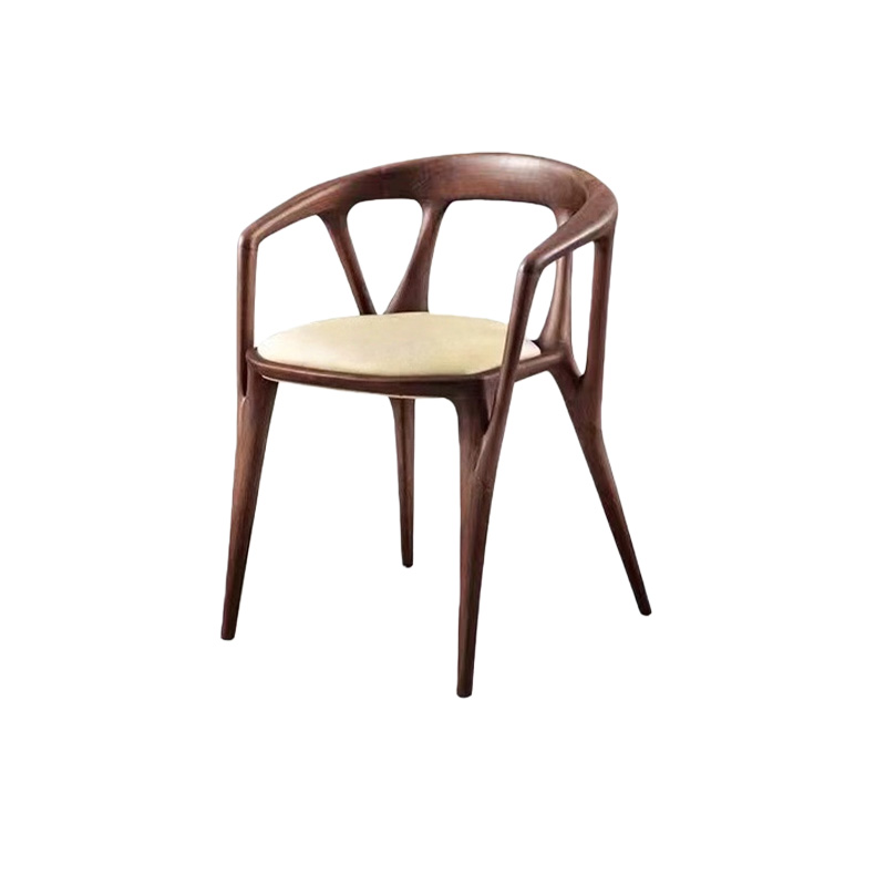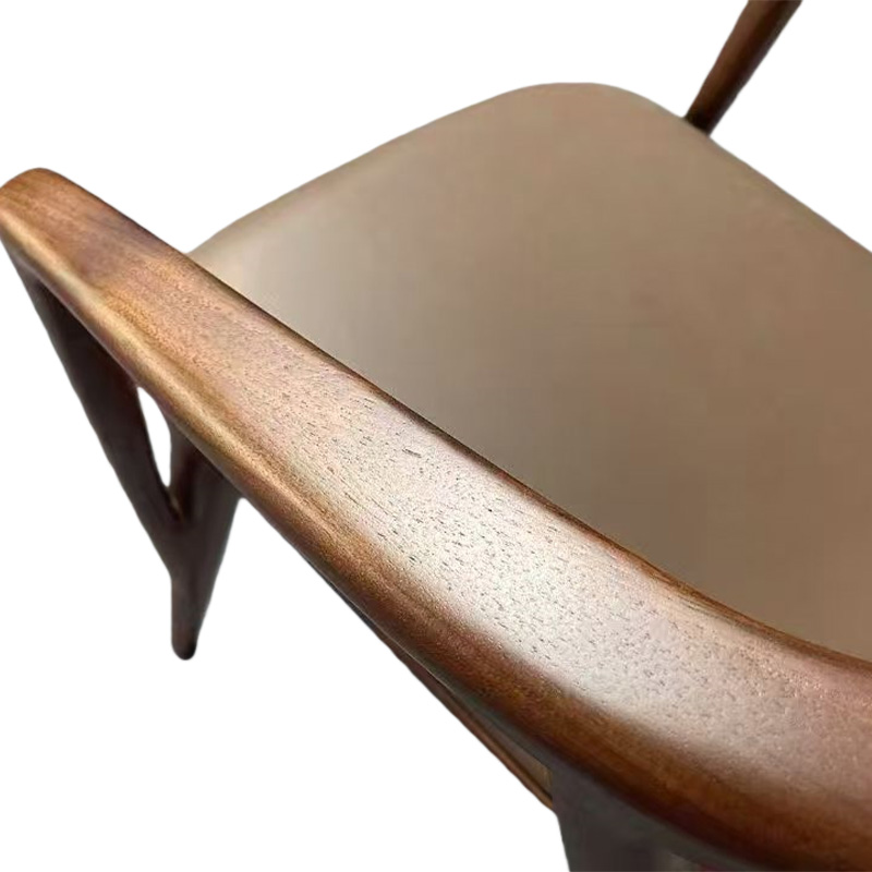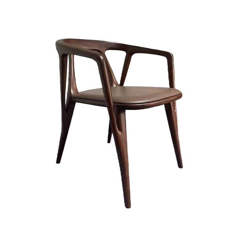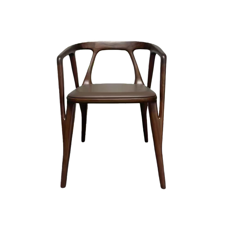 This luxury Italian minimalist solid wood dining chair features a sculptural wraparound armrest and a seamless curved frame in a rich walnut tone. Paired with a refined leather-upholstered seat, it delivers understated elegance with premium comfort. The gently embracing back-and-arm design supports a relaxed posture, while the slim legs keep the silhouette light and modern—perfect for villas, upscale dining rooms, private clubs, boutique hotels, and show-flat staging.