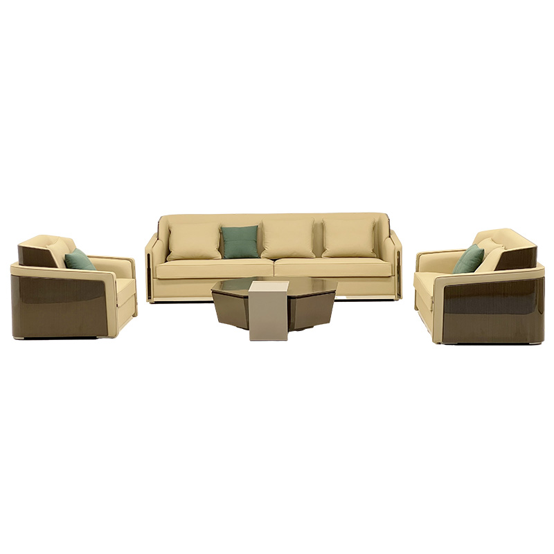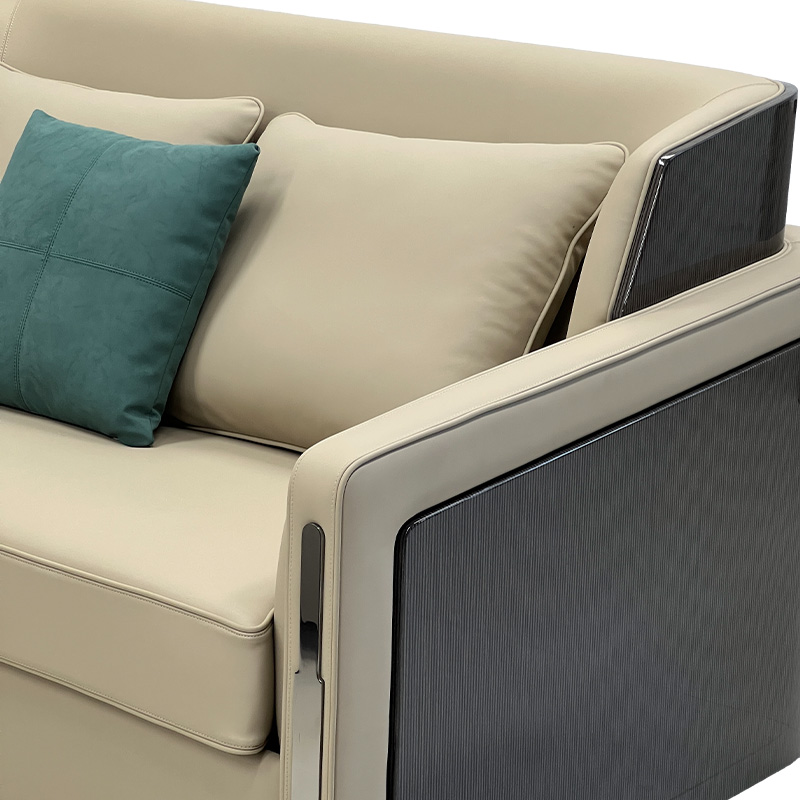 A refined luxury modern 3-seater sofa in a soft beige tone, designed for villas, penthouses and premium hospitality lounges. Clean, symmetrical lines are enhanced by sleek metal side accents, while generous seat depth and plush cushions provide a balanced sit—comfortable yet supportive. Styled with multiple back cushions and an accent pillow, it works perfectly as a statement living room sofa or an elegant lounge sofa for executive spaces.